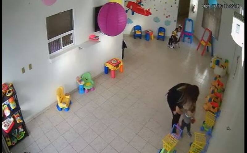 Fue a través de 2 videos obtenidos de las cámaras de seguridad del centro educativo en donde se observa que Natalia jalonea y grita a uno de los menores que al parecer era de preescolar.