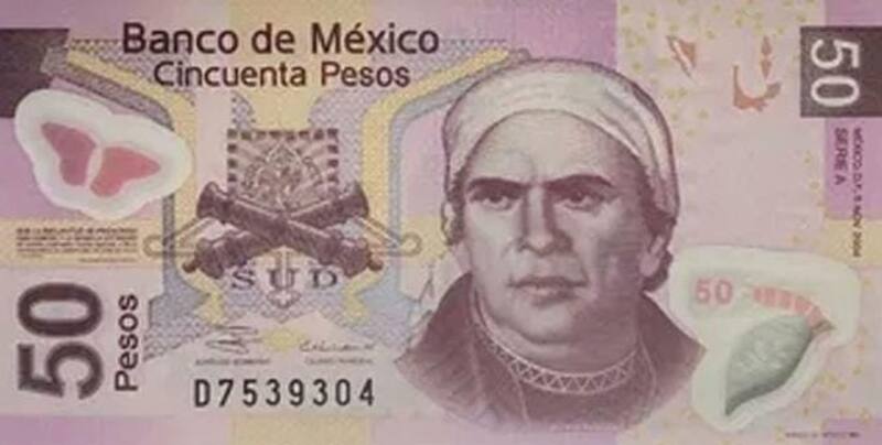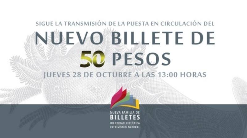 El billete en circulación de 50 pesos hecho por polímero de color magenta, perteneciente a la familia G, con la imagen plasmada del retrato de Morelos al anverso y el acueducto de Morelia en el estado de Michoacán en el reverso será suplido por el nuevo billete de la familia G con motivos de la Fundación de Tenochtitlán.