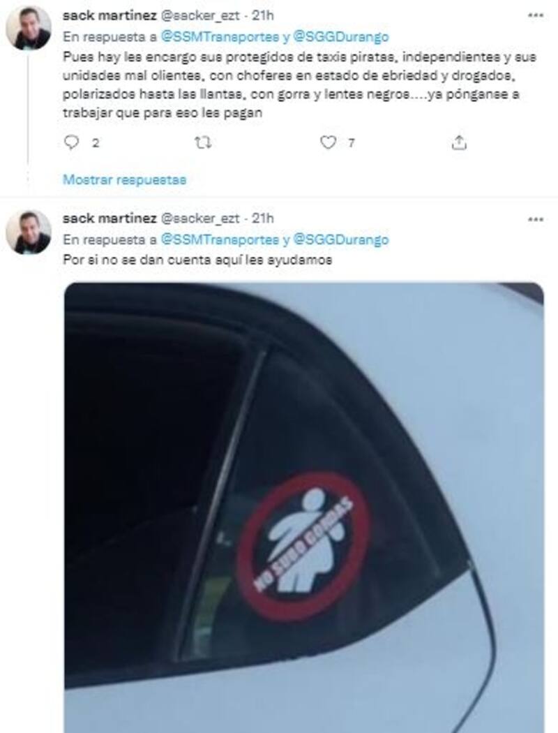 Los usuarios aprovecharon la pronta respuesta de las autoridades locales para denunciar un caso similar, en esta ocasión se trató de un taxi que portaba una calcomanía con la silueta de una mujer excedida de peso, el cual estaba tachado y acompañado por la leyenda "no subo gordas".