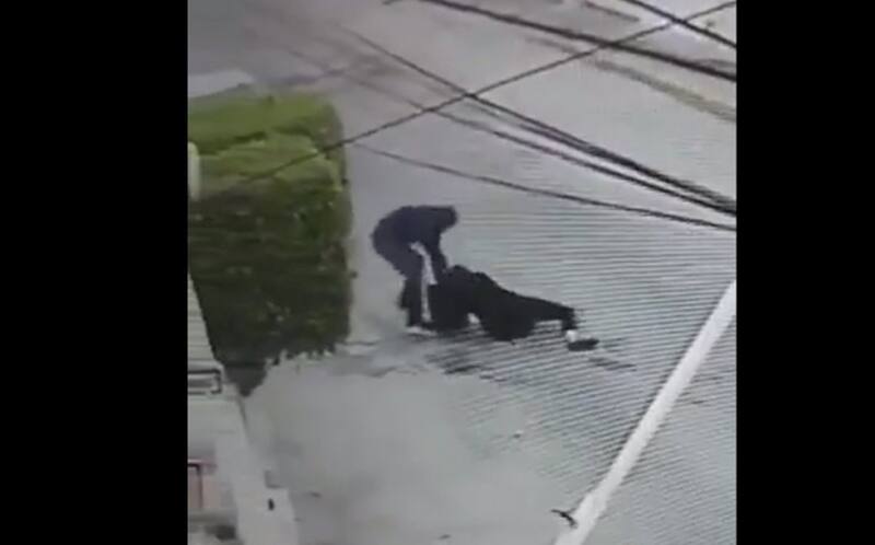 En la grabación se ve a una mujer caminar sobre la banqueta cuando el hombre la arrincona para luego intentar quitarle la bolsa que llevaba. Sin embargo, la joven se aferró a su bolso para ser arrastrada por la calle varios metros.
