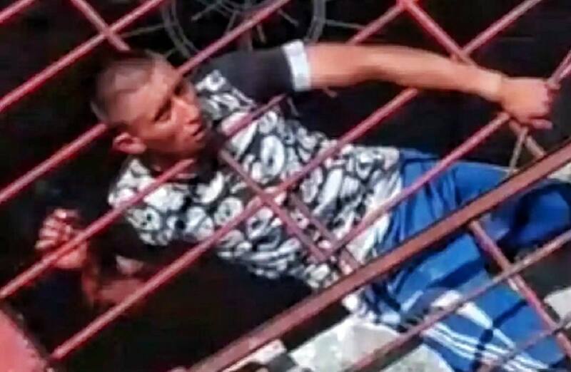 Al momento en Facebook y twitter se pueden observar el video del joven e 23 años de edad atrapado en la azotea de la casa, al mismo tiempo que los oficiales intentan liberarlo usando palos y fierros para remover las rejas.