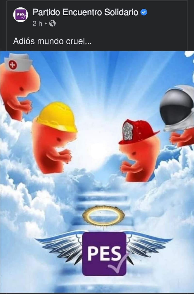En tanto, en la cuenta de Facebook, se difundieron imágenes alusivas a la pérdida de registro del PES, mismas que iban acompañadas de fetos humanos.