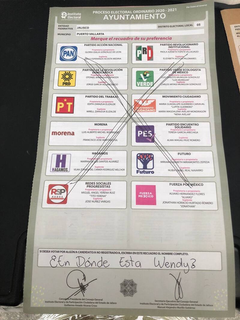Bajo la campaña "Mi voto por un desaparecido", hubo quienes marcaron un tache que abarcó toda la boleta. Se negaron a emitir su voto por alguno de los contendientes de los partidos y en su lugar anotaron el nombre de quien están buscando.