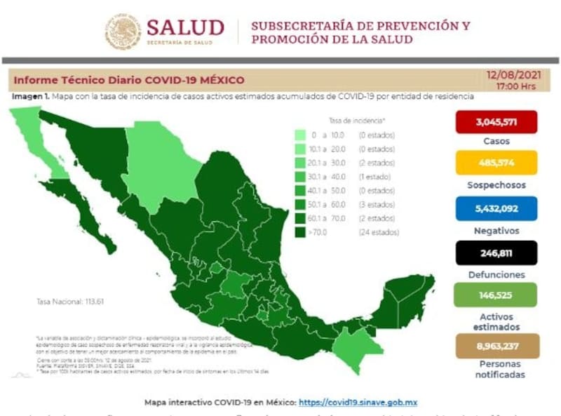Hasta este 12 de agosto así se encontraban las afectaciones por SARS-CoV-2