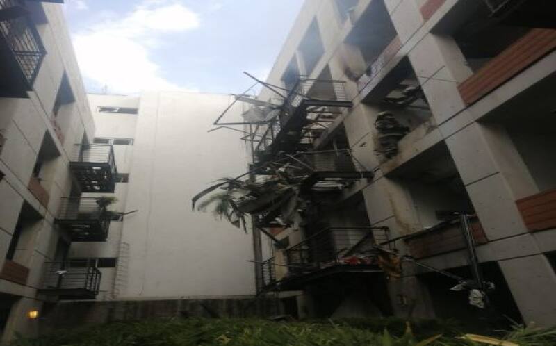 Autoridades de la SGIRPC se encuentran haciendo una revisión de la estructura del edificio.