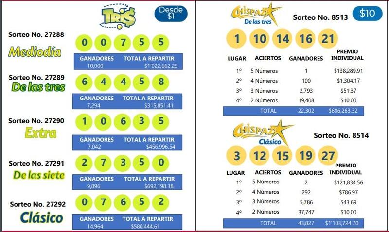 - Números ganadores de Chispazo Clásico: 3, 12, 15, 19, 27
