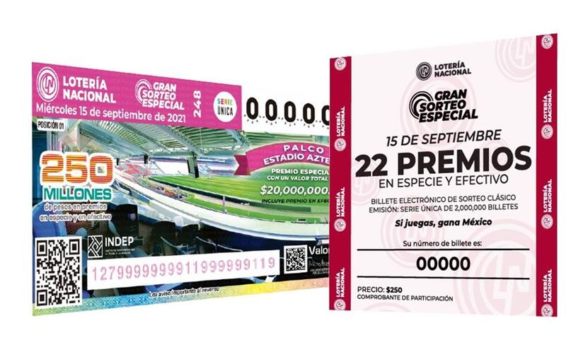 La Lotería Nacional llevará a cabo una rifa este miércoles 15 de septiembre que tendrá al menos 22 premios con un valor de 250 millones de pesos, dentro de los que destacan un palco en el Estadio Azteca, un departamento con vista a las playas de Acapulco, terrenos, casas y departamentos en diferentes partes de México.