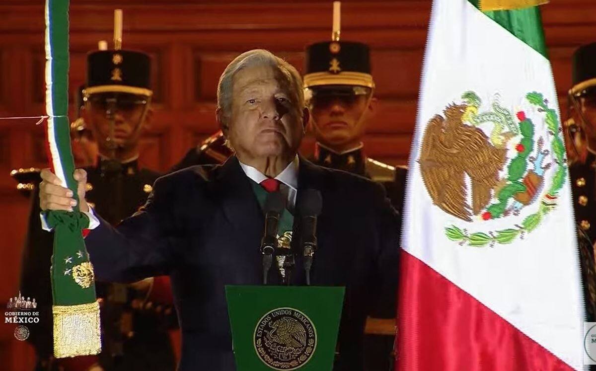 Al inicio de la ceremonia, y acompañado de su esposa Beatriz Gutiérrez, el Presidente escuchó un toque militar y guardó un minuto de silencio. “Mexicanos, ¡Viva la independencia! ¡Viva Miguel Hidalgo y Costilla! ¡Viva José María Morelos y Pavón! ¡Viva Josefa Ortiz de Domínguez! ¡Viva Ignacio Allende! ¡Viva Leona Vicario! ¡Viva Vicente Guerrero! ¡Vivan los héroes anónimos! ¡Viva la libertad! ¡Viva la justicia! ¡Viva la igualdad! ¡Viva la democracia! ¡Viva la honestidad! ¡Viva nuestra soberanía! ¡Viva la fraternidad universal! ¡Viva el amor al prójimo! ¡Vivan las culturas del México prehispánico! ¡Viva México!", gritó AMLO desde el balcón de Palacio Nacional en su arenga.