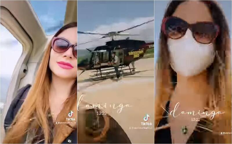 La mujer, identificada como Elvia Martí, escribió en sus redes sociales donde tiene unos 42 mil seguidores que "tonta sería si estando aquí (en el helicóptero), no me tomo mis respectivas fotos y videos".
