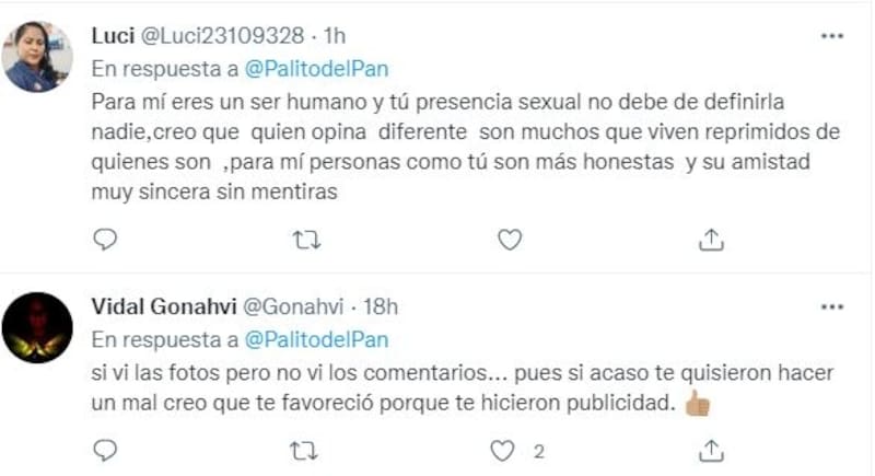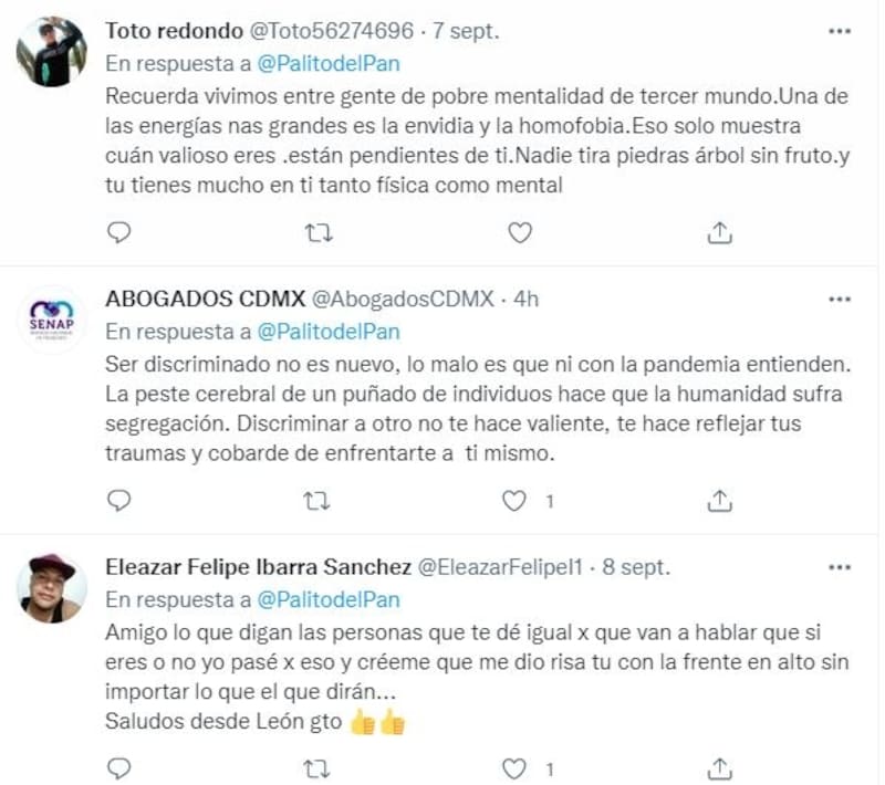 De inmediato la publicación del empleado de Petróleos Mexicanos (PEMEX) se viralizó y los usuarios de esta famosa red social compartieron miles de comentarios de apoyo hacia "Palito del Pan". Entre las respuestas destacadas llamó la atención la de el portal LGBT "Homosensual" que tras la polémica generada invitó a quienes se identifiquen como gay, bisexual, pansexual, lesbiana o una orientación sexual distinta a la heterosexual, a que hagan como el trabajador de la paraestatal y hagan caso omiso a lo que la gente diga.