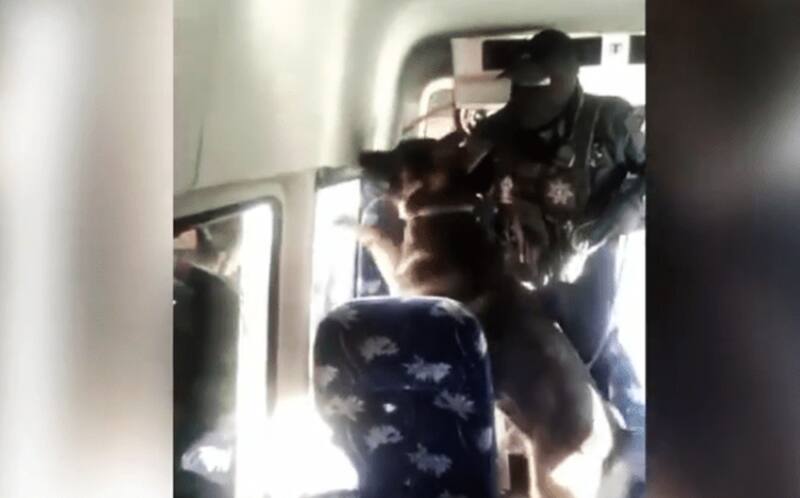 En la grabación se observa  cómo el perro policía olfatea la vagoneta y arriba de una ventana detecta los estupefacientes, para que luego  un elemento de seguridad los retire del lugar y las muestre a la cámara.
