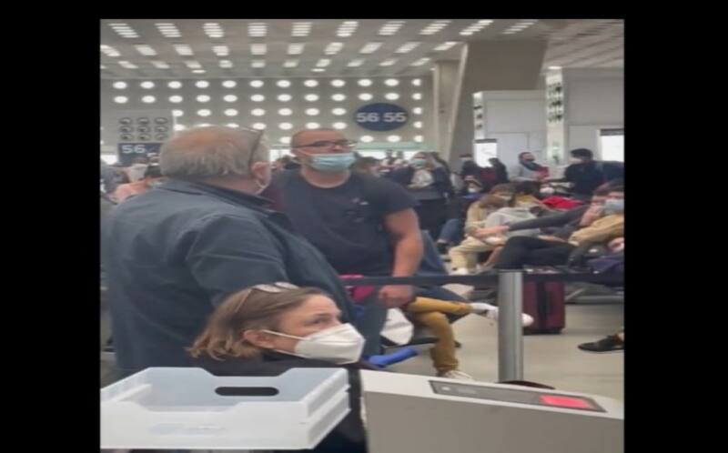 Mientras tanto, los pasajeros afectados se encuentran molestos y expuestos a contagiarse de COVID-19 debido al exceso de personas que se encuentra reunida en la terminal aérea.