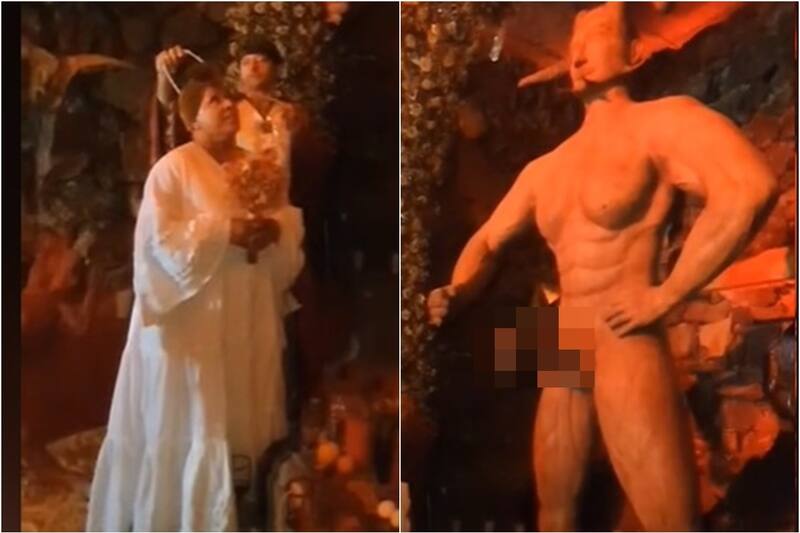 La grabación muestra a una mujer vestida de blanco parada frente a la escultura del Diablo en el centro ceremonial: "Hay una idea equivocada, sobre todo por las cuestiones de las religiones, de que Lucifer, Satanás o el Diablo, es un ser de oscuridad, nefasto o de maldad", según el brujo, quien colocó un lazo simbólicamente a la mujer con una estatua de más de 2 metros de altura y miembro fálico.