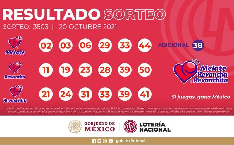 • Números ganadores de Melate Revancha:21 24 31 33 39 41