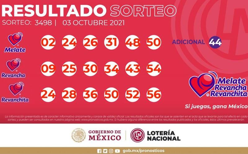 - Números ganadores de Melate Revancha: 24,28,36,50,52,56