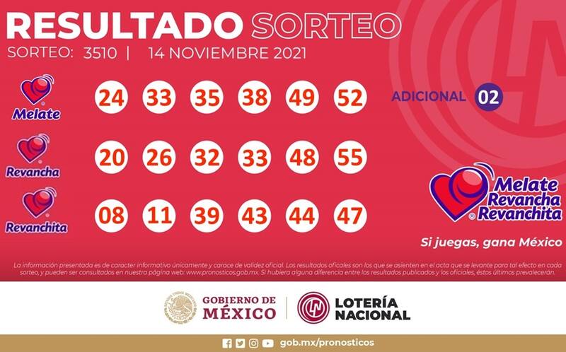 - Números ganadores de Melate Revanchita: 02 03 11 26 37 38