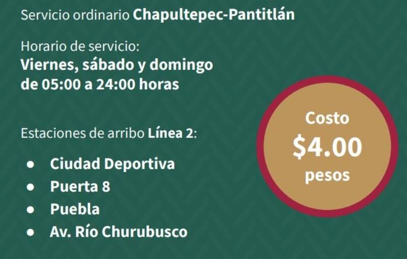 Este servicio tiene un costo de 60 pesos (viaje sencillo) y deberá pagarse con la tarjeta de Movilidad Integrada.