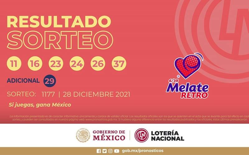 Números ganadores de Melate Retro: 11 16 23 24 26 37