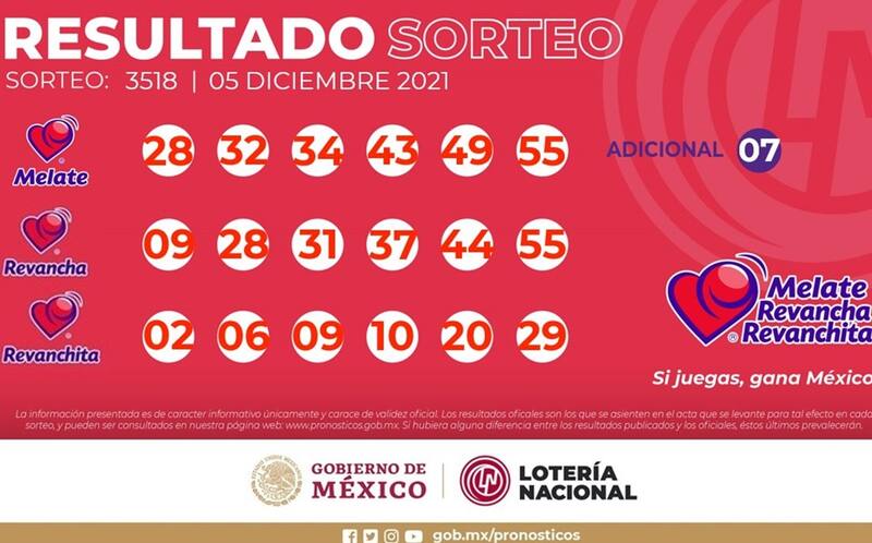 • Números ganadores de Melate Revanchita: 02 06 09 10 20 29