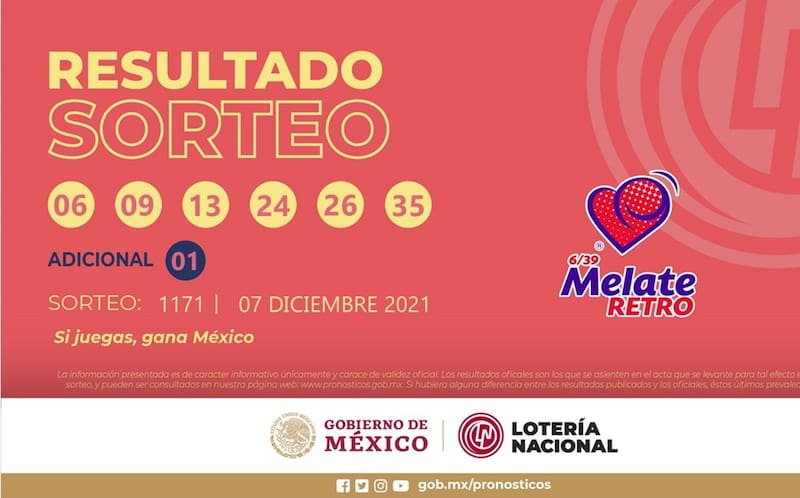 - Números ganadores de Melate Retro: 06 09 13 24 35