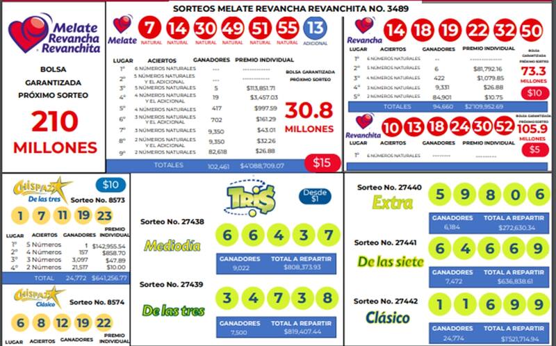 - Números ganadores de Melate Revanchita: 10,13,18,24,30,52