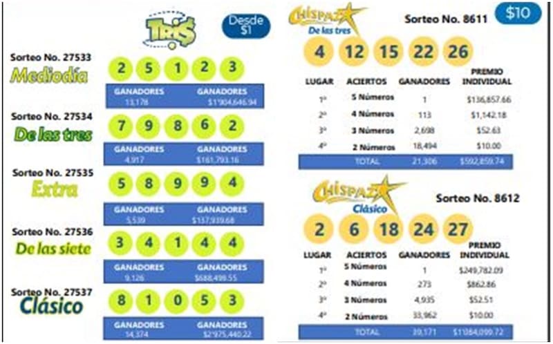 - Números ganadores de Chispazo Clásico: 02 06 18 24 27
