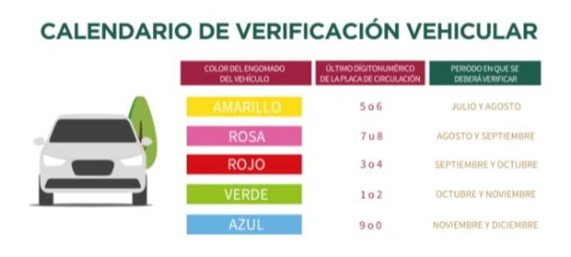 De acuerdo con la Secretaría del Medio Ambiente de la Ciudad de México (SEDEMA), los vehículos deberán realizar y aprobar la verificación de emisiones vehiculares y revisión de componentes de control ambiental cada semestre y deberán continuar verificando conforme al color del Engomado de Circulación o al último dígito numérico de las placas de circulación del vehículo.
