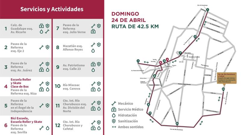 El recorrido de 42.5 km iniciará en Calzada de Guadalupe, esquina Av. Ricarte y finalizará en Circuito Interior Churubusco y Cafetal. A lo largo del camino los ciudadanos podrán encontrar servicio médico, servicio mecánico, zona de hidratación y sanitización.