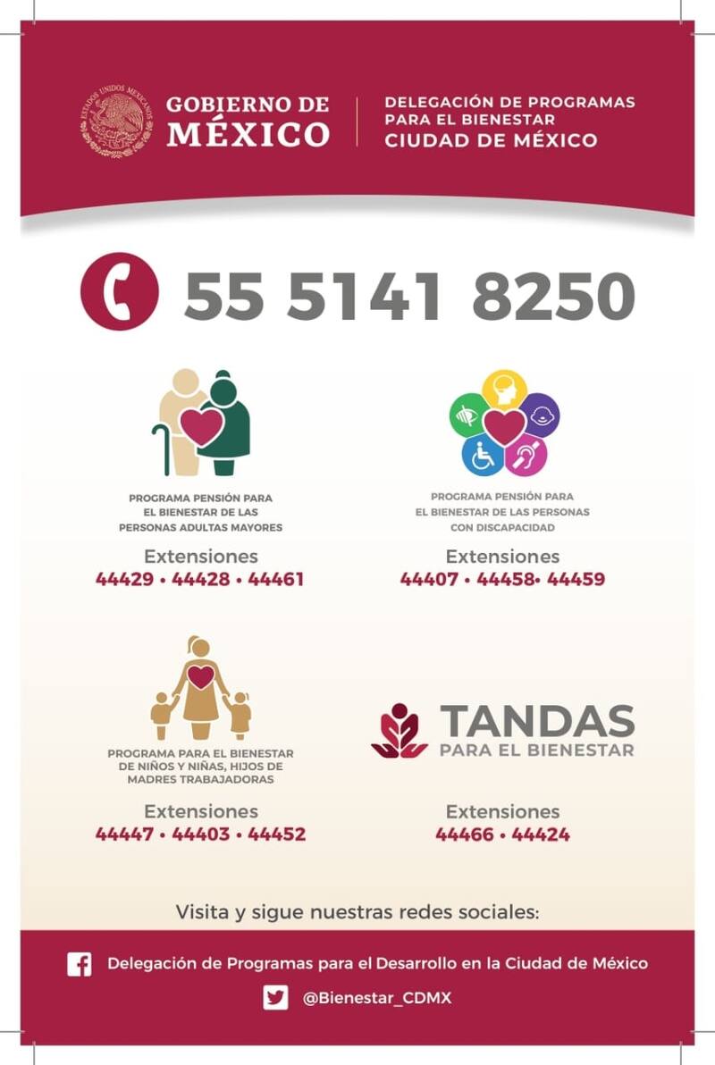 Si necesitar resolver alguna situación del programa o Pensión del Bienestar puedes llamar al 5551418250