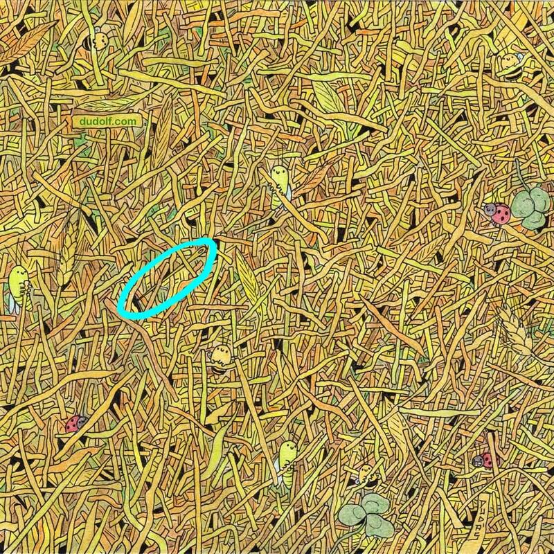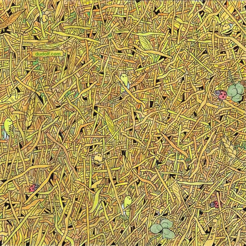 En esta ocasión presentamos una imagen muy colorida y confusa creada por el usuario de Instagram llamado The Dudolf, famoso por ilustrar este tipo de simpáticos y retadores acertijos. En la imagen se puede ver un montón de varillas de pajas en tonalidades amarillas y cafés acompañadas por algunos insectos y plantas, sin embargo entre estos elementos existe un elemento escondido: una aguja.