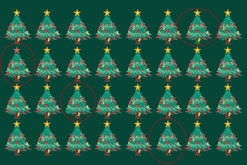 Generalmente, se trata de una imagen en la que tienes que encontrar algo en específico en el menos tiempo posible, para este acertijo visual tendrás que observar detenidamente los árboles de navidad y encontrar la gran diferencia de uno..