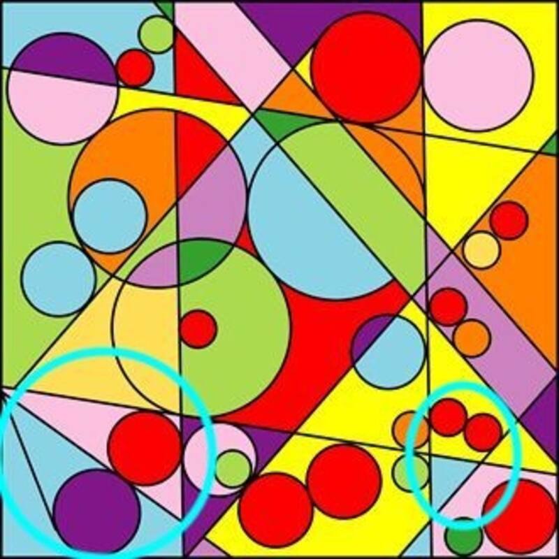 Te compartimos la solución a este reto o acertijo visual. Ambos corazones se encuentran debajo de la imagen, en los costados. Uno se compone con dos círculos rojo y morado y dos triángulos rosa y azul, mientras que el otro está del lado derecho y se distingue por los círculos rojos y la punta amarilla.
