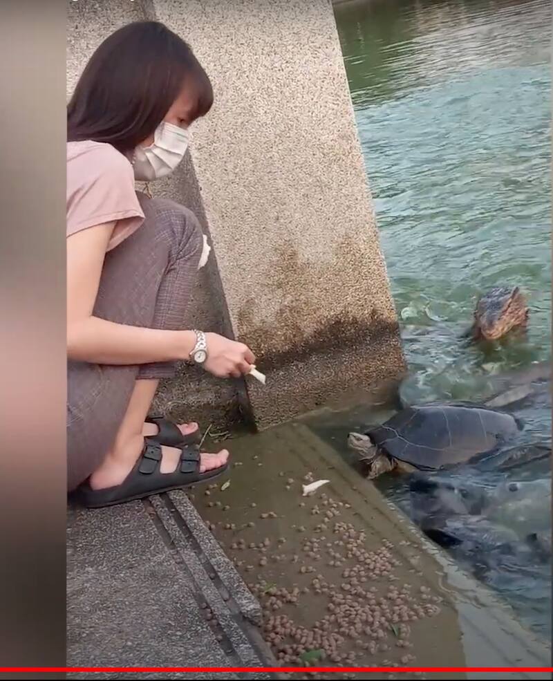 Un video en el que un lagarto interrumpe a una mujer que alimentaba tortugas en un largo se ha hecho viral. El reptil procedió a devorar a los otros animales e intentar subir a la superficie de madera en la que se encontraba la mujer en busca de comer el pan que ella traía consigo.