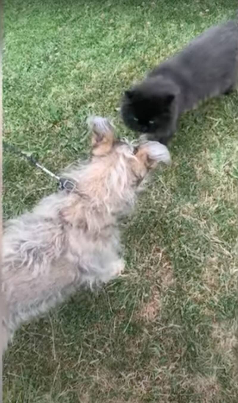 Holly Nolan, una chica estadounidense de 28 años, filmó a su gato Meowfasa, de dos años, disfrutando de un día soleado en el parque e interactuando con personas y perros.