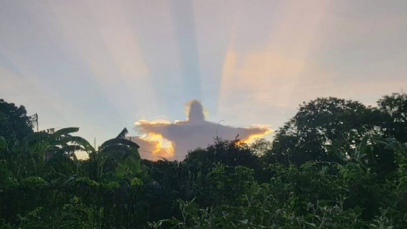 En redes sociales circulan las imágenes de un atardecer en Yucatán, la cual se ha hecho viral por miles de usuarios, ya que la foto parece mostrar a través de una nubes la forma de un con forma de Cristo.