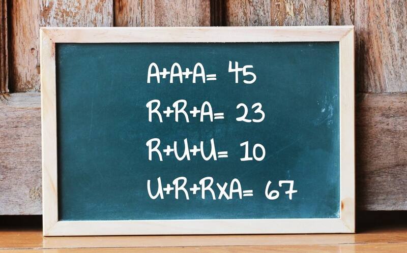 - U+R+RxA= ?? Ahora que tienes todos lo valore sustitúyelos por lo números correctos: 3+4+4x15, pero recuerda realizar las operaciones en orden, es decir, primero las multiplicaciones: 67.