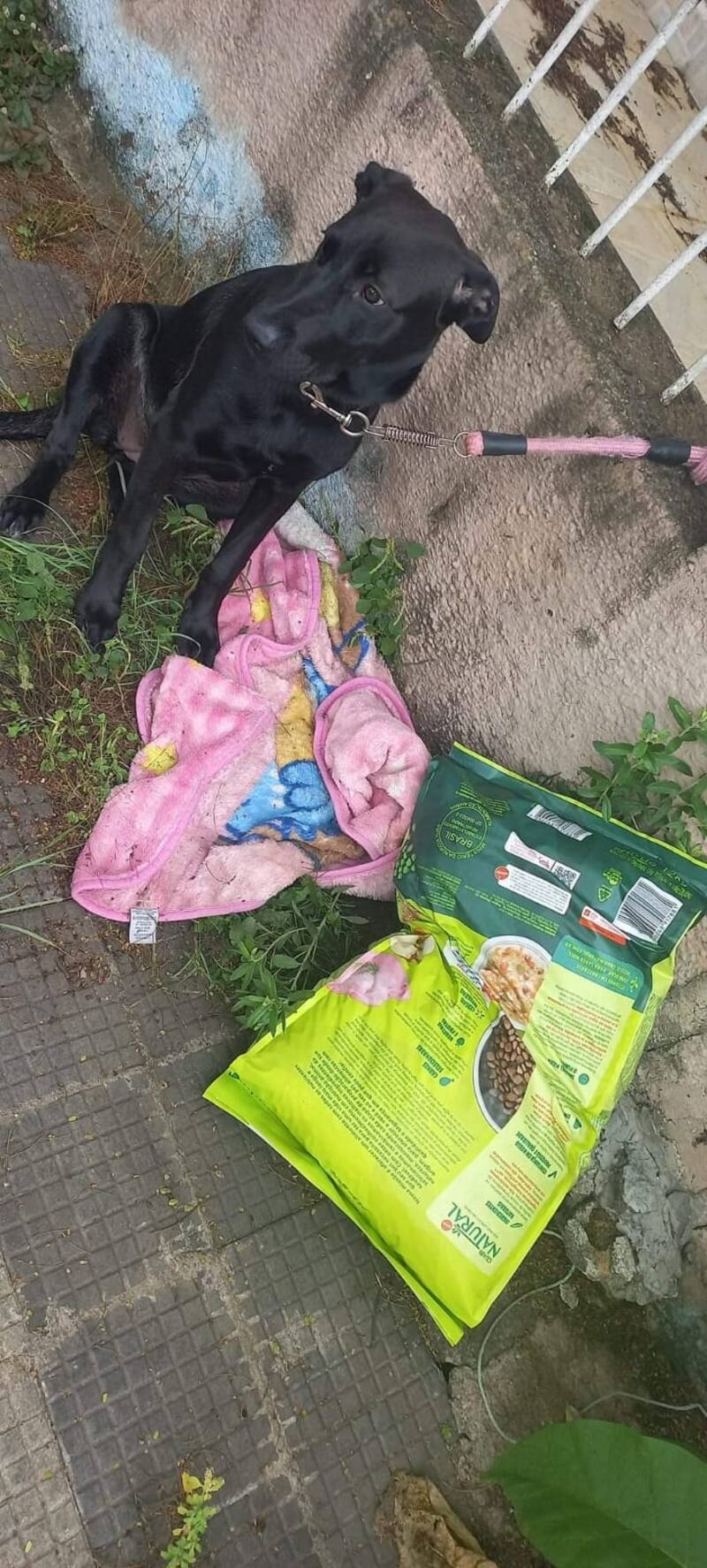 Mostró imágenes del can donde se encontraba un bulto de croquetas, una cobija y la nota que decía: