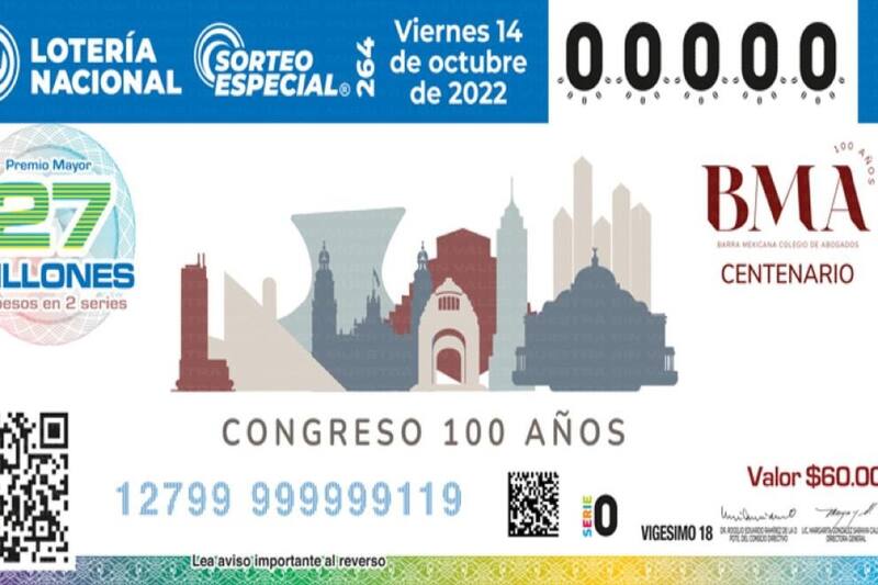 La Lotería Nacional llevó a cabo este viernes 14 de octubre, el Sorteo Especial 264 conmemorativo por el Centenario de la Barra Mexicana del Colegio de Abogados