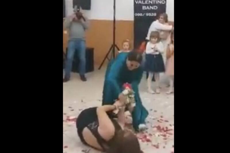 En el siguiente clip subido a Facebook por el famoso organizador de eventos Peraki Soto, se observa a dos mujeres que asistieron a una boda, no se sabe si de algún familiar o amigo, pero que al quererse ganar el ramo de la novia comenzaron a pelear.