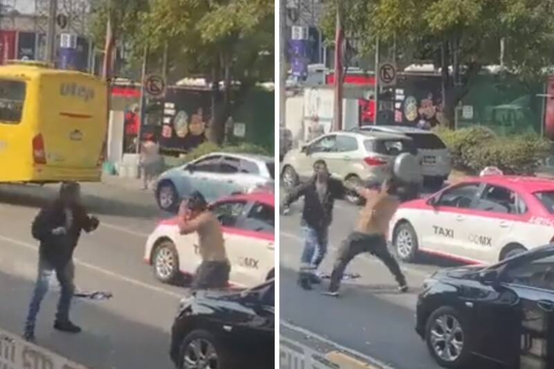 En el clip se puede ver a un hombre sin playera, se trata del limpiaparabrisas, mientras que el otro que está vestido de negro es el taxista. Ambos comienzan a agredirse con puñetazos, algunos al aire y otros al objetivo, sin temor a nada, los sujetos también tratan de patearse en todas partes.