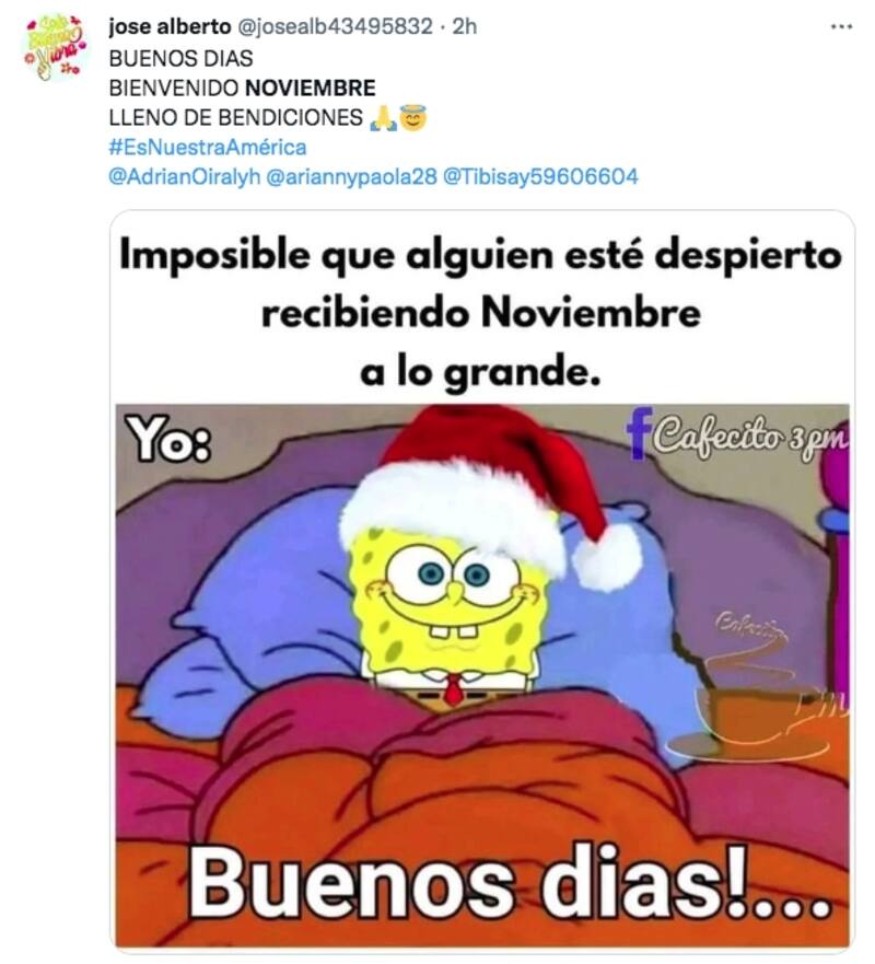 Así pues, te mostraremos algunas de las bromas que se popularizaron con la llegada de un nuevo mes, claro que no podía faltar la referencia al tema de Reik lanzado en 2005, 'Noviembre Sin Ti' y el cambio radical de la temporada del terror a las fiestas decembrina.
