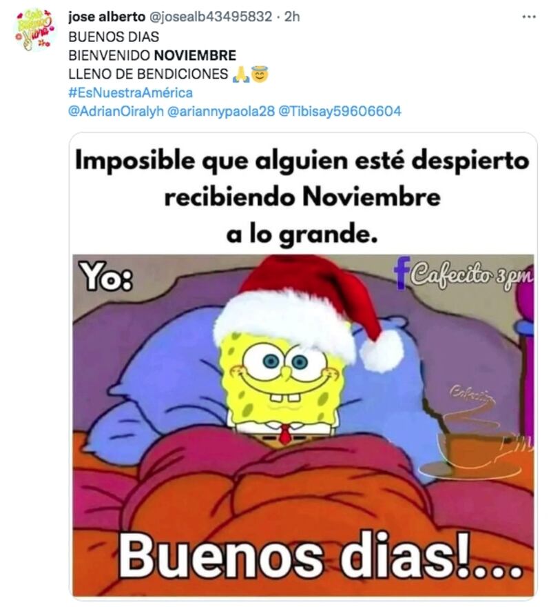 Así pues, te mostraremos algunas de las bromas que se popularizaron con la llegada de un nuevo mes, claro que no podía faltar la referencia al tema de Reik lanzado en 2005, 'Noviembre Sin Ti' y el cambio radical de la temporada del terror a las fiestas decembrina.