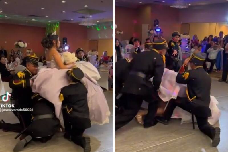 VIDEO| Chambelanes tiran a quinceañera y se hacen virales