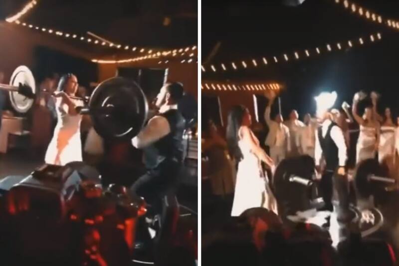 Tal fue el caso de un video que circula en las redes sociales en donde una pareja en plena boda comienza a mostrar su rutina de ejercicio que practican en un gimnasio. La mujer lleva un elegante vestido blanco, mientras que el hombre tiene un traje negro.