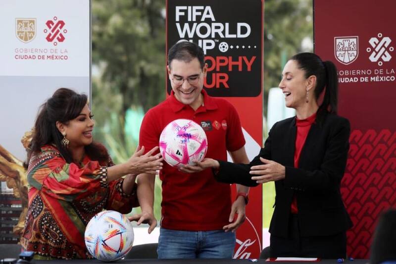 En estos se logra ver como entona "México lindo y querido" para animar a la Selección Mexicana en Qatar 2022 desde el Antiguo Palacio del Ayuntamiento.