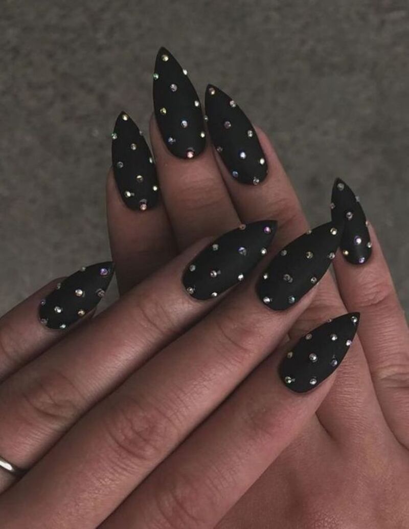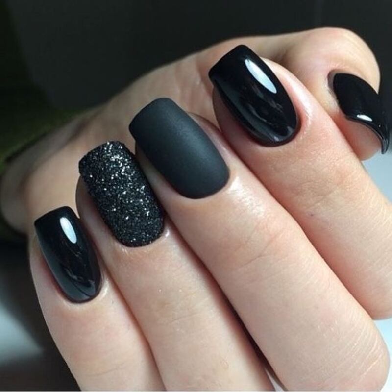 Con brillos: Las uñas negras y encima de ellas unos cuantos brillitos de piedras especiales, pueden hacer que tus manos se vean sofisticadas.
