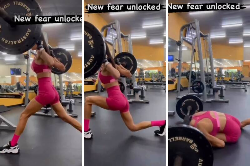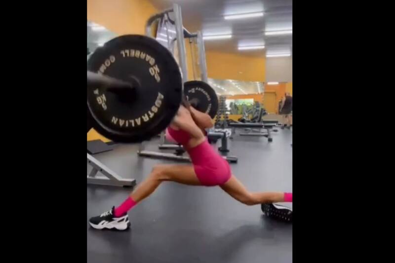 VIDEO| Mujer hace mal un ejercicio, una pesa cae sobre ella y se viraliza
