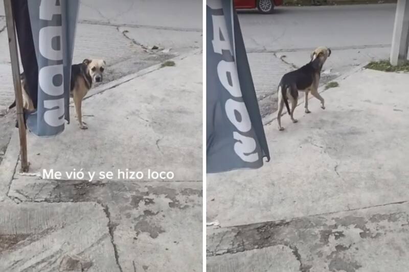 El sujeto explica que, su perrito se salió de casa y el fue a comprar barbacoa, aunque cuando estaba por regresar a su hogar, se encontró a 'Dorito', como es llamado el can. 'Dorito' se da cuenta que su amo lo observa y finge que no está, incluso da unos pasos hacía la dirección contraría.
