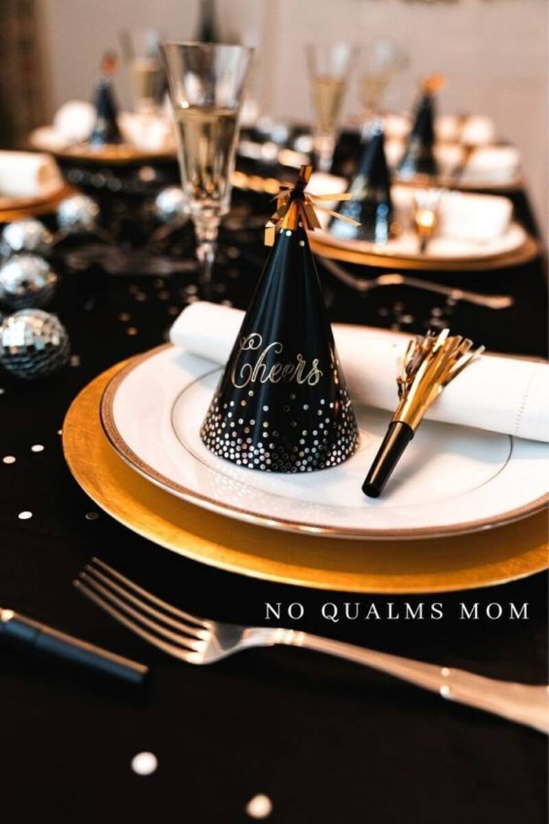 - Elegante: Puedes utilizar tonos negros, dorados y plateados, esto en los platos, las paredes e incluso los gorritos de fiesta. Estos colores ayudarán a darle elegancia a tu morada.