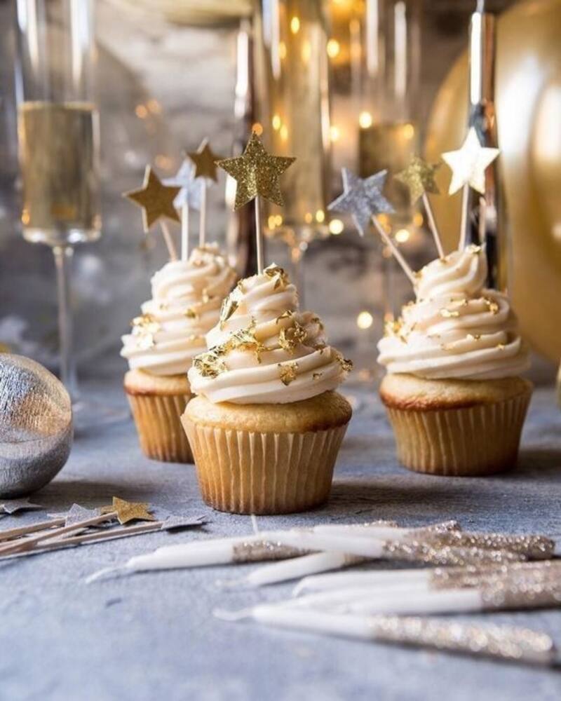 - Cupcakes: Estos deliciosos panecillos son ideales para Año Nuevo, pues puedes ponerles decoraciones de al temática.